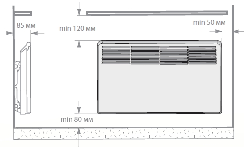 глибина опалювального приладу 85мм