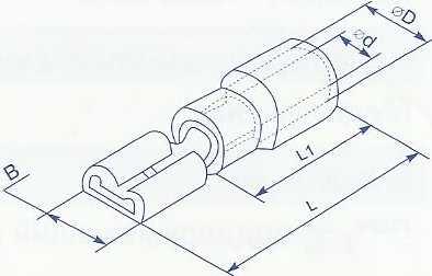 Конектор плоский з частковою ізоляцією, тип мама, ширина лопатки 6.3мм, для проводу перетином від 0.5 до 1.5 квадрат мм потрібен для формування ізольованих рознімних з'єднань ланцюга за принципом "мама - тато".
