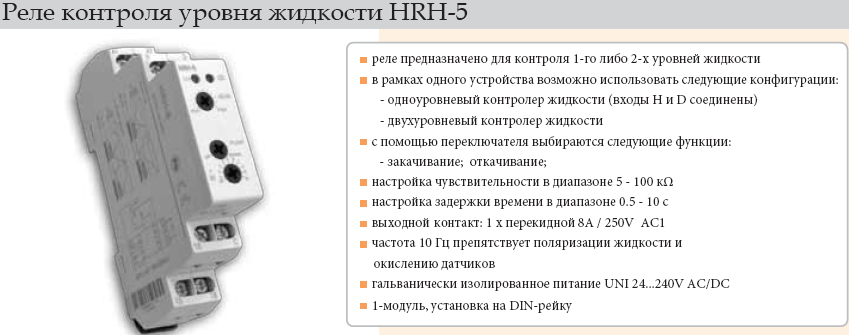 Реле контроля уровня жидкости HRH-5 UNI 24-240V AC/DC 16A регулятор универсальное купить в Киеве с бесплатной доставкой по выгодной цене