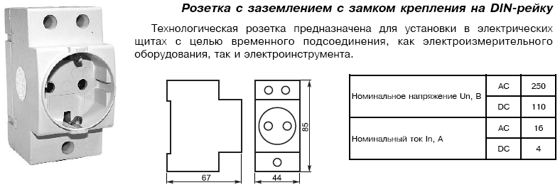 Перейти к заказу модульной розетки с заземлением на ток до 16А напряжение 220В