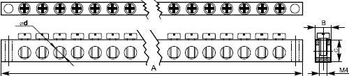 Габаритні і монтажні розміри нульовий шини бруском 72 отвори - клеми